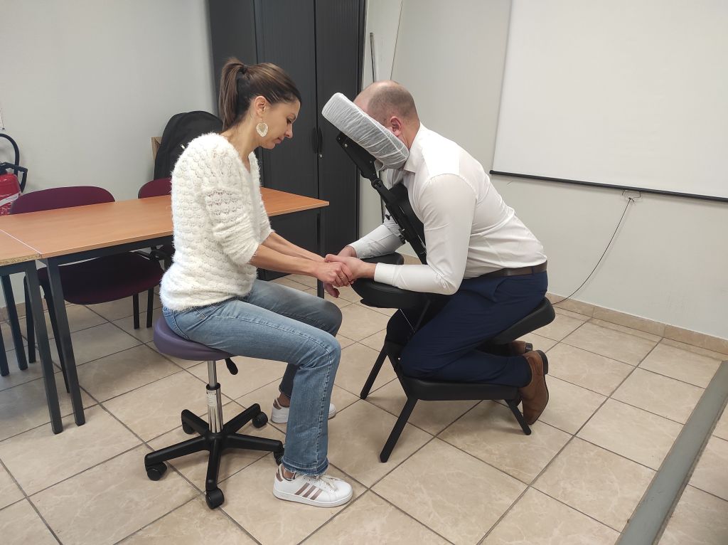 Ce massage s’adapte à l’environnement de l’entreprise. Il se pratique habillé, assis sur une chaise ergonomique nécessitant peu d’espace. Je me déplace avec tout le matériel nécessaire, vous n’avez donc pas besoin de fournir d’équipement, il suffira juste de mettre à disposition une petite salle. Rapide, il ne dure que 20 minutes par collaborateur. Un planning horaire vous sera transmis en amont afin que vos employés puissent s’inscrire sur le créneau qui leur convient le mieux. Le jour de la prestation les horaires seront respectés, toute personne arrivant en retard aura son massage écourté afin de ne pas pénaliser le collaborateur suivant.